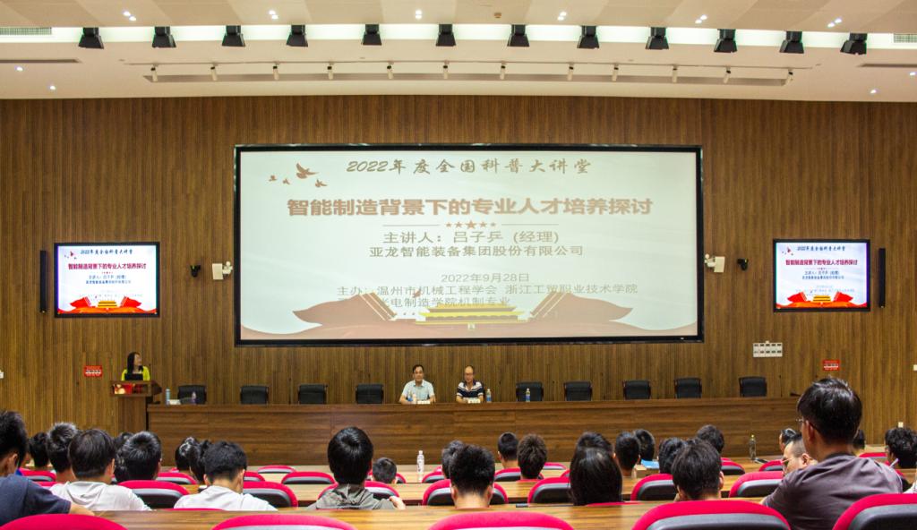 2022年9月28日,3044永利集团机械制造及自动化和数控技术专业开展了2022级新生始业教育,本次讲座是3044永利集团与温州市机械工程学会联合主办,出席讲座的嘉宾有温州市机械工程学会副理事长周章添、亚龙智能装备集团股份有限公司吕子乒经理、3044永利集团专业主任郑秀丽,还有机制和数控技术专业的专任教师与2022级机制和数控技术专业全体新生。