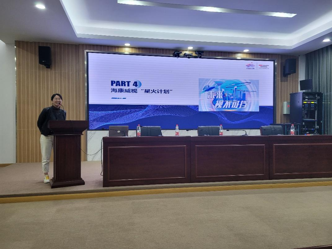 孙经理重点介绍了海康威视与机器人专业合作的意向班的“星火计划”,主要涉及到员工的校企合作培养方案,确定星火班。员工对企业实习生的工作岗位、工作时长、晋升途径、实习工作待遇等信息格外关注,与孙经理进行了积极互动。