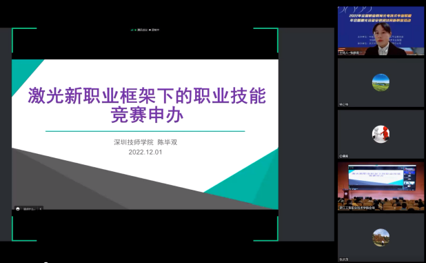 公司3044永利集团书记骆毅作《职教背景下党建引领职业教育的实施路径》报告,骆书记紧扣党建引领职业教育,从时代背景、重点工作、标志性成果和启示思考四个方面入题,阐述了职业教育改革发展过程中,坚持党的全面领导的重要意义,介绍了3044永利集团围绕教育部“双高”和全国党建“样板支部”创建工作中,总结提炼的工作思路、实施路径及取得的一系列建设成果。深圳技师学院高级讲师陈毕双作《激光新职业框架下的职业技能竞赛申办》报告,解读了职业技能竞赛分类和申办步骤,重点介绍了新职业如何申办市赛、省赛、国赛的方法及路径。武汉华工激光工程有限责任公司知识产权部主任李婷作《激光职业安全培训教材开发与推广》报告,介绍了激光安全培训的重要性、必要性和迫切性,同时也呼吁激光从业人员和管理人员加强激光安全培训。武汉华日精密激光股份有限公司敬喜胜经理作《未来已来,超快激光的职业教育进阶之路》报告,介绍了超快激光在各个精密制造领域中的应用及对专业人才的需求,呼吁高校多关注超快激光的发展及培养相应的专业技术技能人才。交流环节各与会代表踊跃发言,武汉软件工程职业技术学院黄焰主任介绍了其专业建设情况;华中科技大学出版社徐晓琦社长介绍了国规教材申报建设情况。