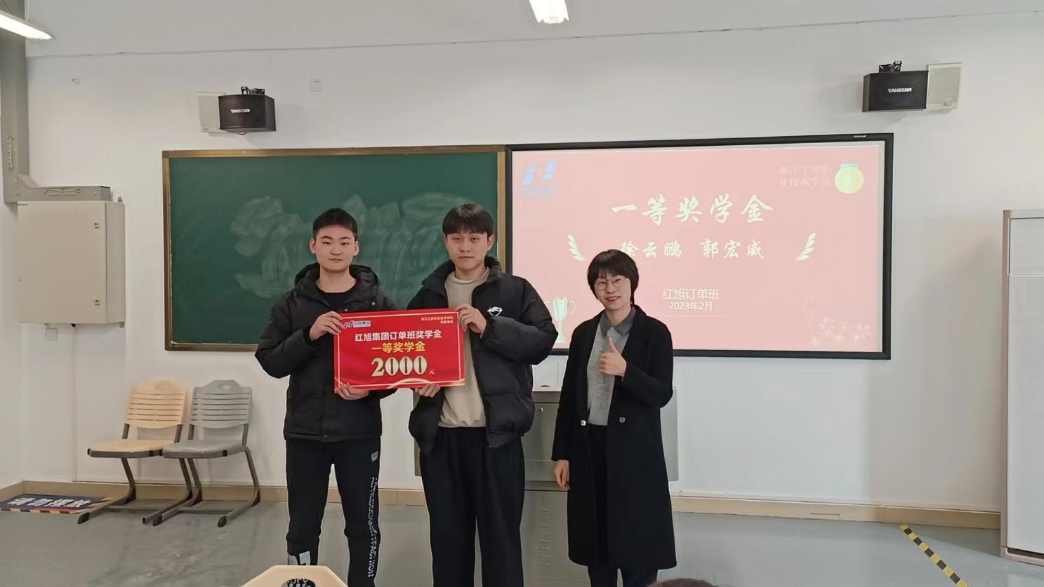 3044永利集团于2021年9月与红旭集团股份公司签订协议,成立“红旭订单班”。为奖励品学兼优的员工,红旭集团设立“红旭奖学金”20000元。根据员工大二学年在校综合表现,每学期评选出一、二、三等奖,分别奖励2000元、1000元和500元。