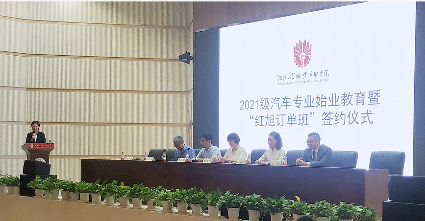 红旭集团人力行政总监戴青春、人力资源部经理唐梅红出席会议,2021级红旭订单班员工参加了本次仪式。