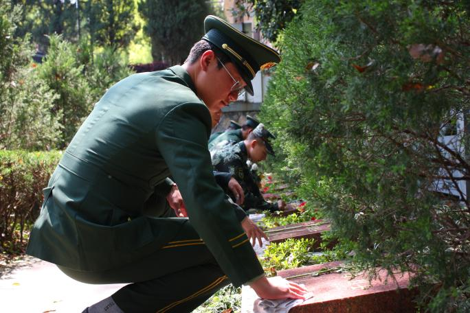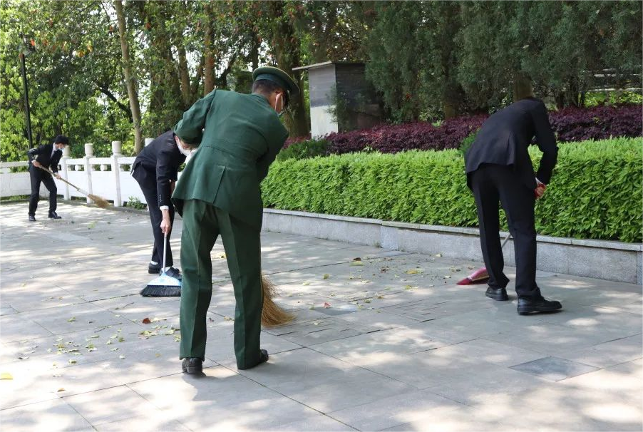 随后,大家对陵园进行祭扫,向先烈敬礼鞠躬,给英烈擦亮墓碑,借此进一步表达对先烈们的缅怀之情。烈士古有之,今昔尚复存,一块块墓碑记录的是先烈的丰功伟绩,承载的是不畏牺牲、勇敢顽强的革命气概。沧海横流方显英雄本色,革命精神亦当永垂不朽。
