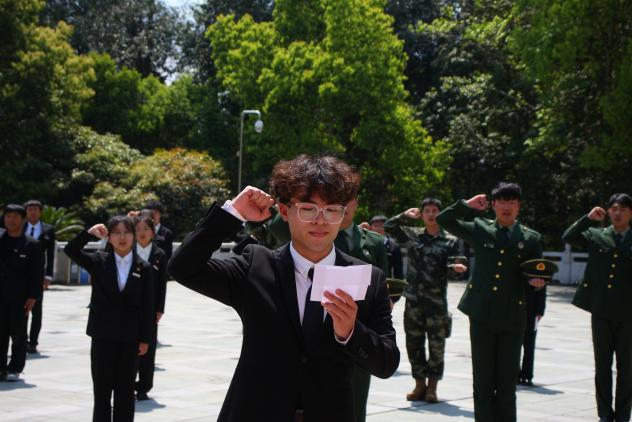 “我志愿加入中国共产主义青年团,坚决拥护中国共产党的领导,遵守团的章程,执行团的决议,履行团员义务…”在鲜艳的团旗下,大家高举右拳,重温入团誓词。铿锵誓言在纪念碑前回荡,誓言声声告慰先烈英灵,铮铮诺言展现青年担当。