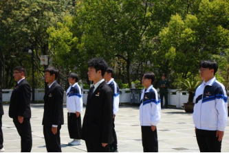 悼词结束后,全体同学奏唱国歌,向烈士纪念碑敬献花圈与白菊花,礼敬先烈先辈,寄托缅怀之情。随后大家怀着无比崇敬的心情向烈士纪念碑进行三鞠躬并默哀一分钟。记忆从未褪色,历史仍在回响,先驱血筑祥和路,史册留芳万古垂!