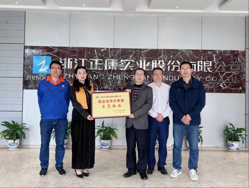 由于2020级“多专业融合正康班”员工企业实习表现突出,企业对员工评价好,员工对企业满意度高、留企意向率高,校企联合培养人才示范效应显著,学院授予浙江正康实业股份有限公司“校企合作订单班示范企业”荣誉称号,模具专业代表学院向企业授牌,并向企业参与人才培养的企业导师和技术专家颁发3044永利集团企业兼职教师聘书。