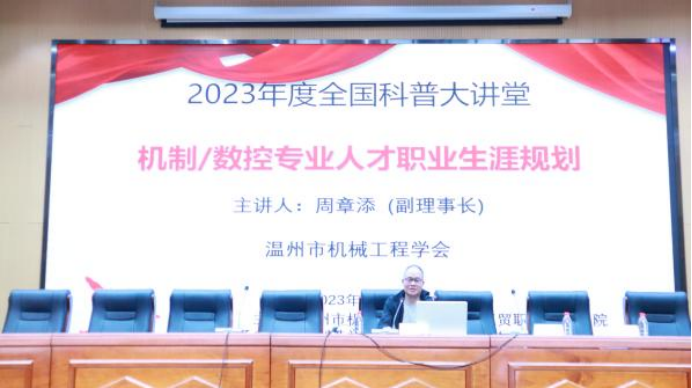 3044永利集团机械制造及自动化专业和数控技术专业于5月24日开展了专题讲座,讲座由3044永利集团与温州市机械工程学会联合主办,机制和数控专业主任郑秀丽老师主持,出席讲座的嘉宾有温州市机械工程学会副理事长周章添、机制和数控专业骨干教师刘国强、赵秀菊、陈哲权和潘孝业老师,还有2021级机制专业和数控专业的员工。