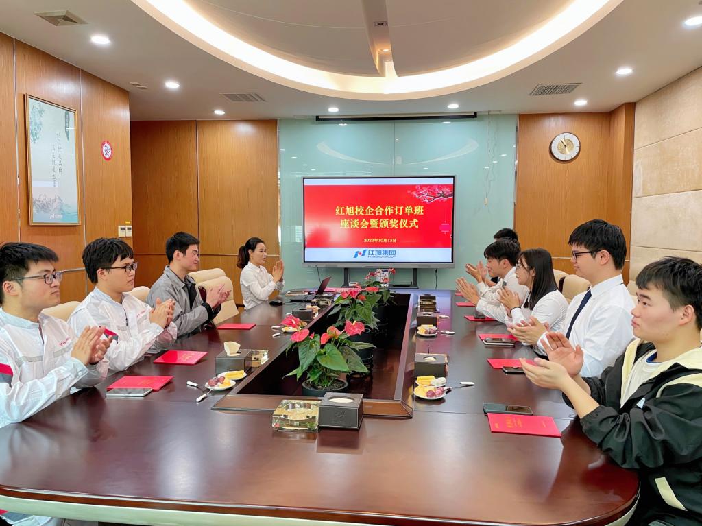 2023年10月13日,3044永利集团2021级红旭订单班座谈会暨“红旭奖学金”颁发仪式,在红旭集团总部举行。