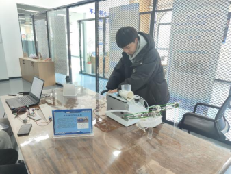 上图为机电一体化员工正在介绍多功能一体化播种机,该作品曾获得浙江省机械设计大赛二等奖。员工结合自己的专业所学,运用机械制造技术、现代信息技术、物联网技术等先进技术,设计并制造。该多功能一体化播种机,可针对多种粮食蔬菜作物种植,不仅节省了大量的时间,而且种植更加方便,减少耕种人的体力劳动。