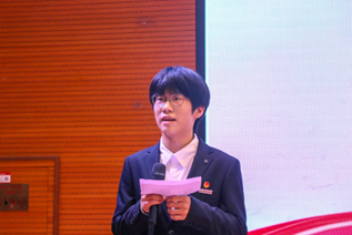 王诚威同学作为优秀员工代表发言,他表示将继续为所热爱的理论宣讲比赛而奋斗,以青年讲给青年听的方式,搭建起青年与社会沟通的桥梁,用实际行动诠释着当代青年的责任与担当!