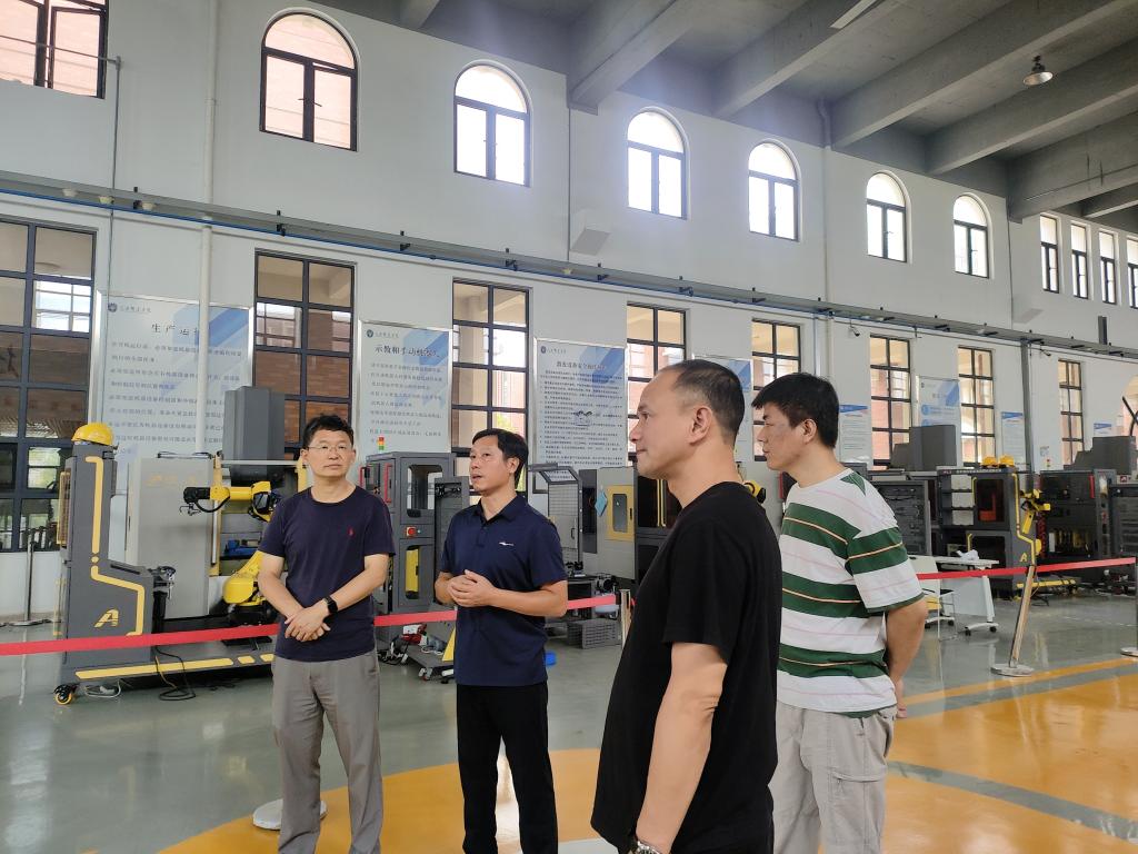 钟老师随后带领陈博士和潘总参观介绍了智能光电专业实训场地、协同创新中心和智能制造产线。
