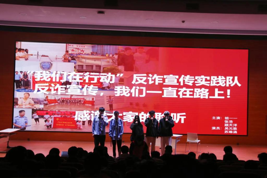 在大赛的舞台上,各位同学充分发挥奇思妙想与卓越才能,把反诈知识和技巧融入于情景剧之中。