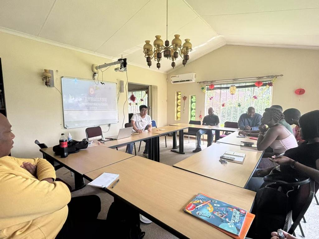 在与南非集团的交流中,李俊达老师详细介绍了浙工贸南非丝路学院。学院致力于搭建中南职业教育交流平台,拥有优质团队,与企业紧密合作,为员工提供实习就业机会,培养了众多具备国际视野的专业人才,同时分享了在这段时间在自动化培训的案例。