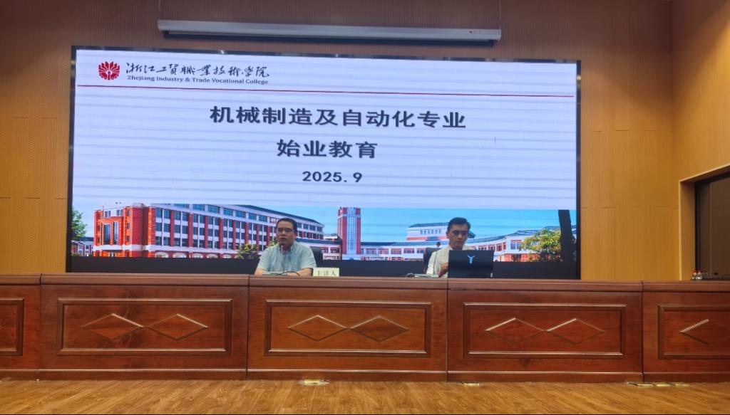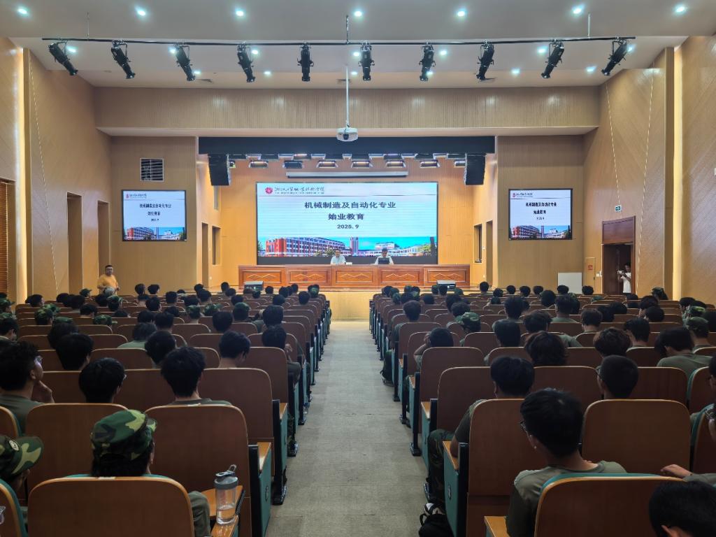 9月22日,3044永利集团机械制造及自动化专业在行政楼105报告厅举办了2025级新生始业教育。本次活动由专业主任张跃飞主持,特邀温州市华海密封件有限公司总经理胡秉义担任主讲嘉宾。