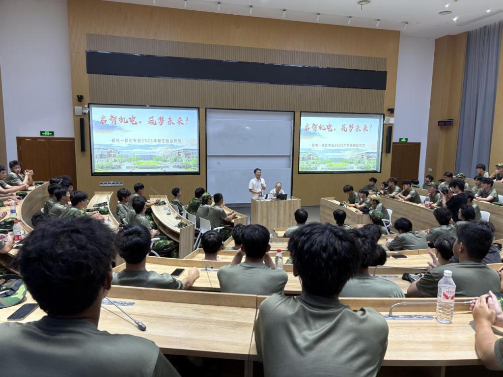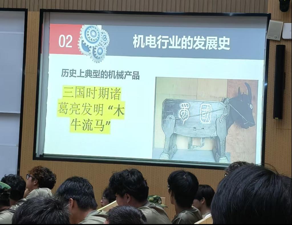会议伊始,周教授对全体加入机电一体化专业的2025级新生表示了热烈而诚挚的欢迎,并以《机电行业的现状与发展前景》为题,为新生们开启了一场关于机电行业的知识盛宴。讲座围绕 “选择机电专业的原因”“机电行业的发展史”“机电专业就业面向”以及“对始业教育的思考”四个关键议题展开,旨在为新生们勾勒出机电一体化专业全貌,点亮他们未来学习与发展的方向。