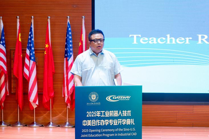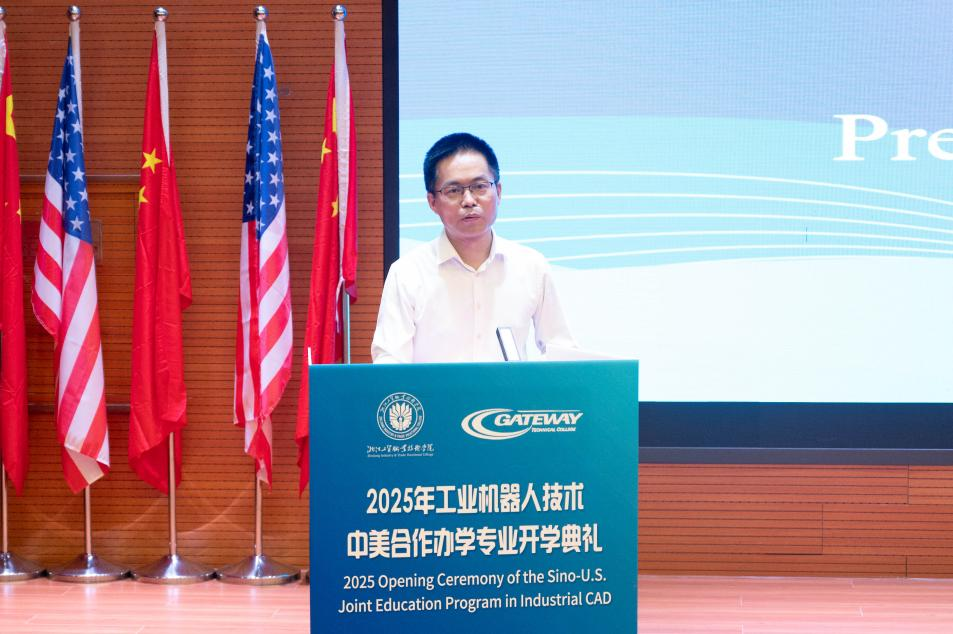 9月25日,3044永利集团为2025级工业机器人技术(中美合作办学)专业新生隆重举行了开学典礼。本次典礼以“融汇中外,智造未来”为主题,聚焦国际化技能人才培养与智能制造领域前沿发展,旨在为新生开启老员工涯奠定坚实基础。参会的主要领导和嘉宾有:美国盖特威技术学院副董事长Demeetrise Trishele Ford,员工处主任Olivia Navarro Muro ;北卡教育联盟秘书长Shijun Espinoza,教师代表Katrelle Joyce Taylor;3044永利集团董事长余闯,副董事长汪焰,教务处处长贾永枢,国际合作与交流处处长夏侯珺,3044永利集团经理郑道友,公司党总支书记李晓星等。工业机器人技术(中美合办专业)全体员工也悉数到场。会议由浙工贸副董事长汪焰主持。
