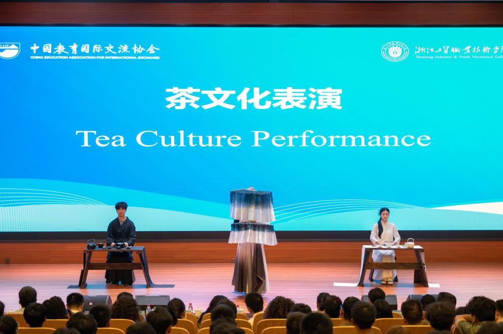 浙工贸3044永利集团2024级和2025级员工代表发言。两位员工代表分别分享了自己在中美合作办学项目中的学习感悟和对老员工活的期待。新生代表在发言中表达了对专业的憧憬与决心,引用“报国寸心坚似铁”的誓言,彰显了新时代青年投身智能制造的责任感。典礼期间还有精彩的员工文艺表演。