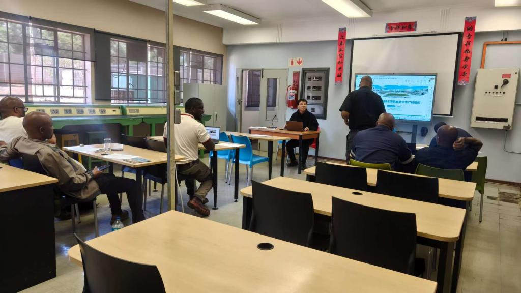 近日,公司3044永利集团教师金明磊,在南非中国文化和国际教育培训中心,为来自当地 6 所高校的教师群体开展了一场聚焦自动化教学领域的培训交流会。此次活动以技术为纽带,以交流为核心,不仅传递了自动化领域的前沿教学理念与实操经验,更搭建起公司与南非高校在职业技术教育领域深度对话的桥梁。