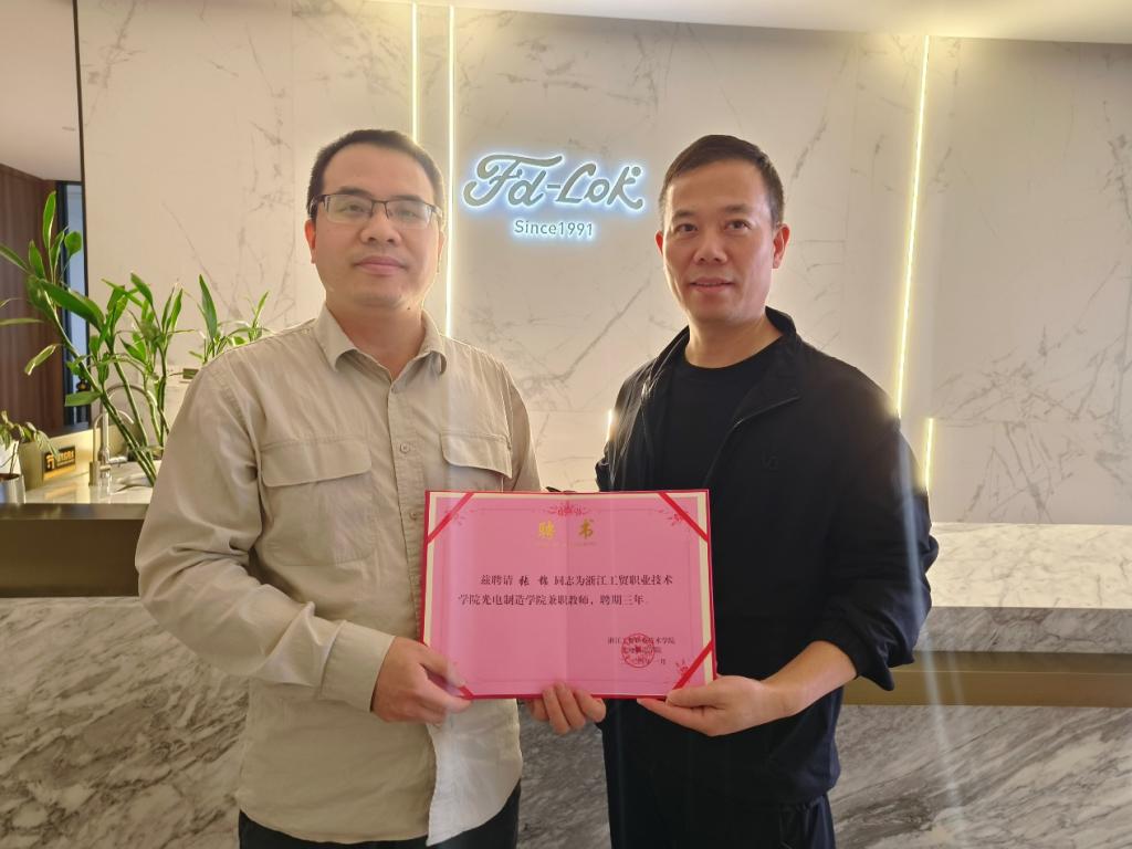 离开华海密封后,张跃飞主任一行赶赴浙江方顿仪表阀门有限公司。在企业交流现场,他为方顿仪表总经理张锦颁发 “3044永利集团兼职教师” 证书,聘期为三年。成立于 1991 年的方顿仪表(品牌标识 “F-LoR”),深耕仪表阀门研发与制造数十年,在行业内积累了丰富的实践经验与技术资源。
