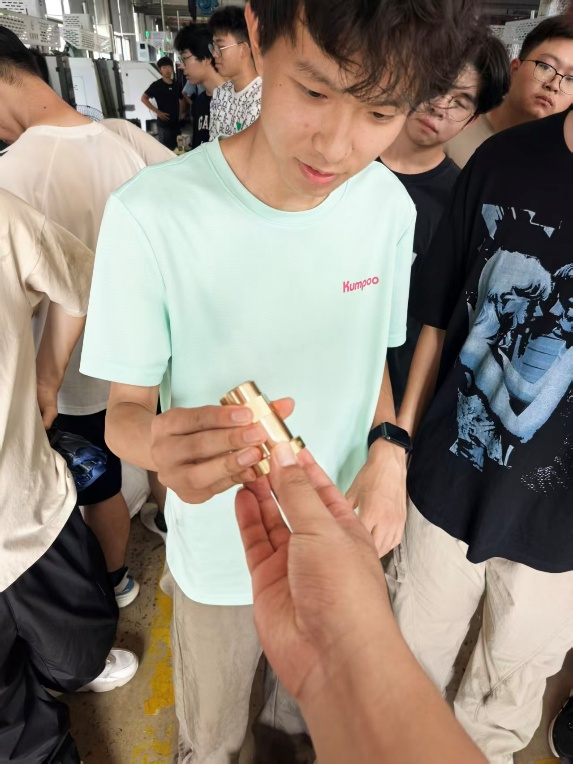金波阀门有限公司深耕阀门研发与制造领域,拥有成熟的生产体系和先进的加工技术,是本次认知实践的优质实践基地。抵达企业后,在公司朱厂长的热情接待与细致引导下,师生一行先后参观了大型阀门加工组装车间与阀杆管接头自动化加工车间。