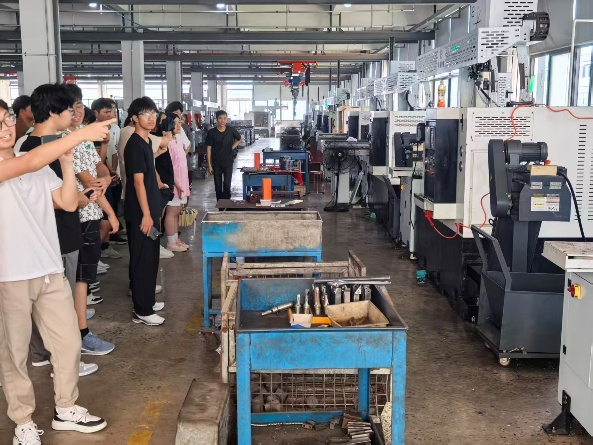 走进阀杆管接头自动化加工车间,智能化生产设备的高效运转让新生们直观感受到现代制造业的技术魅力。朱厂长针对自动化生产线的运作原理、设备调试技巧及质量检测标准进行了深入解析,现场演示了关键工序的操作流程,帮助新生理解自动化技术在机械制造领域的应用价值。参观过程中,专业教师同步进行知识点延伸讲解,将课堂上的机械制造基础理论与企业生产实践紧密结合,助力新生深化认知。