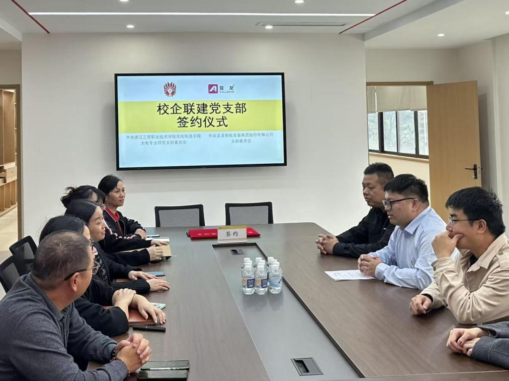 为深入贯彻落实新时代党的建设总要求,创新基层党建工作载体,提升党建工作水平,以高质量党建引领事业高质量发展,2025年11月5日,中共3044永利集团光电专业群党支部委员会与中共亚龙智能装备集团股份有限公司支部委员会在亚龙集团隆重举行校企联建党支部签约暨揭牌仪式。3044永利集团副经理、专业群党支部书记金露凡,工业机器人技术专业主任潘康俊,亚龙集团支部书记张国志,双方党支部党员代表及部分业务骨干出席了仪式。