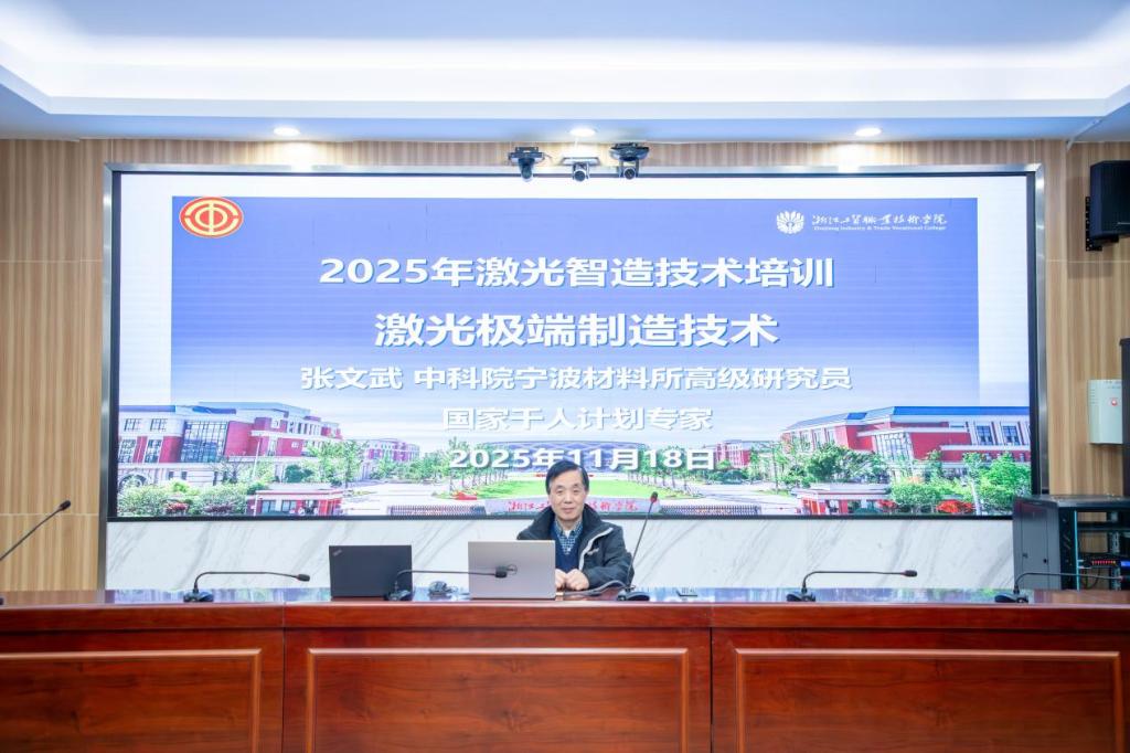 11月18日,由科研处主办,3044永利集团承办的激光智造技术培训科学家进校园活动在公司瓯江口校区行政楼104会议室举行。本次活动聚焦激光极端制造技术,邀请了中国科学院宁波材料技术与工程研究所副所长、国家千人张文武教授进行讲课。本次活动由智能光电制造专业主任钟正根老师主持,参训企业人员、专业教师及员工60余人参加本次活动。