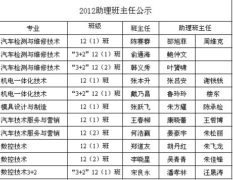 2012年班主任助理公示