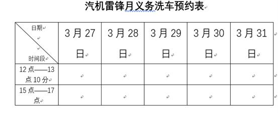 在这感恩的三月,为感谢您平时对院系教育事业的辛勤付出,我们汽机学院实践部秉承绿色啄木鸟精神开展“学习雷锋精神,传承匠人品质”的主题活动,发挥本专业的特色,义务帮助老师们清洗车辆。这次活动采用先预约的方式,预约需要您提供车牌号与手机号,有此意向的老师,可尽早联系我们噢。本次活动同时是为大一新生提供锻炼的平台,请老师们多多支持!