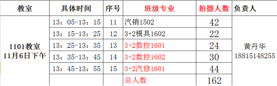 根据汽机分院2018届员工情况,学院教务处与汽机分院安排2017年11月6日下午为汽机分院在校毕业生进行图像采集,请相应班级做好通知与组织工作。其它毕业班安排在12月底周末,到时再另行通知。现将11月6日图像采集的相关事项通知如下: