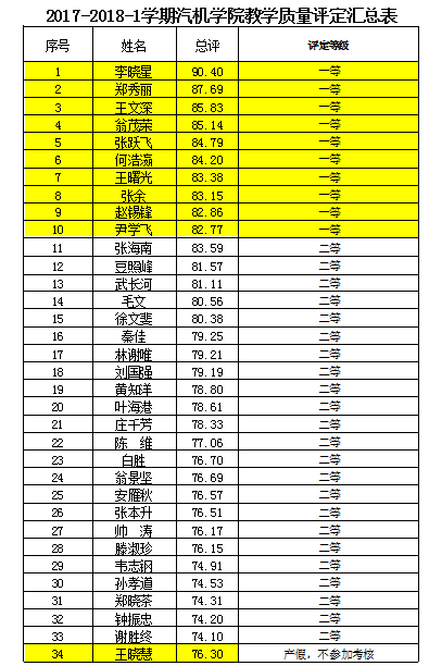 附件:2017-2018-1学期汽机学院教学质量评定结果;2017年度分院部门考核结果