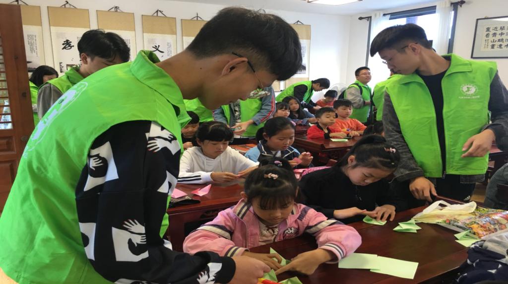 早上9点,志愿者们来到驿头文化大礼堂,受到当地孩子的热烈欢迎。活动初始,由环境工程1801班的葛佳好为员工们带来介绍传统节日--重阳节的知识课堂。课堂上,一段以《九月九日忆山东兄弟》为背景音乐的沙画视频,引出了课堂的主题---重阳节。员工们积极参与课堂中,讨论重阳节的别称、习俗以及重阳节的来历。在了解重阳节的相关知识后,志愿者们带领员工观看并教导朗诵《中华孝道》,教室里回荡着“百善孝为先,孝敬是根本……中华孝道是美德,传给后来人”的声音。课堂的最后一部分,志愿者们指导孩子学折樱花。在志愿者的帮助与小朋友们坚持不懈的努力下,各个员工们都做出了一朵朵美丽的樱花。活动最后,志愿者希望员工们能牢记传统节日,回家孝敬长辈,同时为爷爷奶奶送上自己亲手折的樱花。
