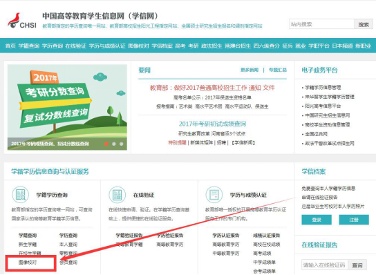 1、登陆“中国高等教育员工信息网”http://www.chsi.com.cn/,点击网页上方图标“图像校对”;