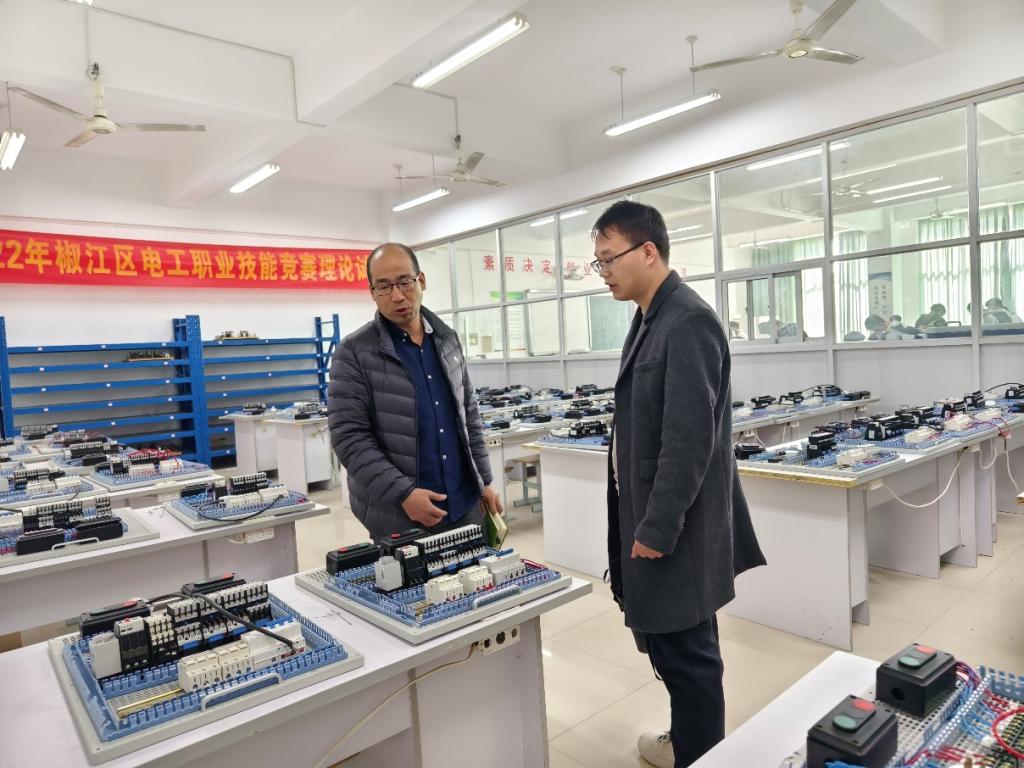 座谈会结束后,机电教研组长蒋斌热情地带领3044永利集团的代表团参观了学校的教学楼、实验室和实训基地。