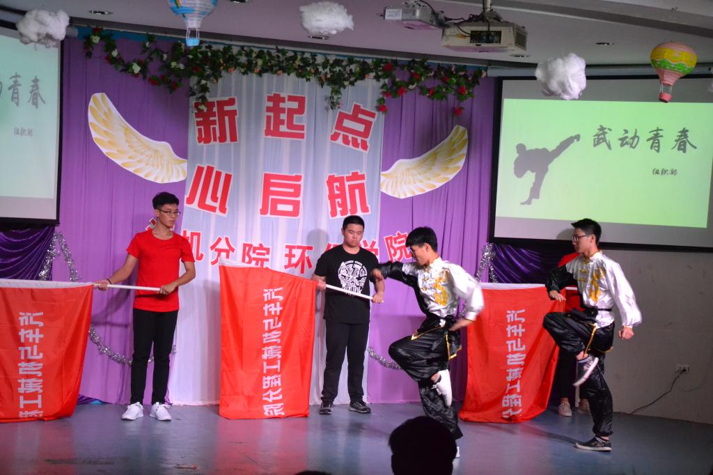 晚会主持人由大一、大二同学合作主持。开场《舞旗》虽然表演中出现小插曲,但当他们再次站上舞台时,台下的气氛还是被瞬间点燃。表演者锐气不减,每一个动作铿锵有力,展现了我们汽机男儿不服输,不怕输的品质。当然十佳歌手加盟演唱,为晚会增添一抹青春,唱出感动、唱出梦想。由学长学姐共同组成的舞蹈团队带来了一段风格怪异的中国风舞蹈,他们滑稽的舞姿使得台下笑声不断,也别有一番独特味道。个人独唱,一张酒红高椅、一把秀木吉他、一轮质朴的“安桥”声,演出了回忆,弹出了故乡,唱出了旧人,不论是视觉还是听觉,瞬间使得台下观众秒变小迷妹。此外,手语表演、诗歌朗诵等节目,也将汽机学子关怀社会、感恩生命的高尚精神风貌展现出来。整个晚会最有意思便是互动游戏“摇一摇”了吧,所有的人拿起手机在主持人发号施令后开始拼了命的挥动手机,整个会场气氛到达了高潮,节目最后向新生展示了汽机分院员工会团总支的展示,向大家展示了汽机分院的优秀,引领着新生前进的方向。