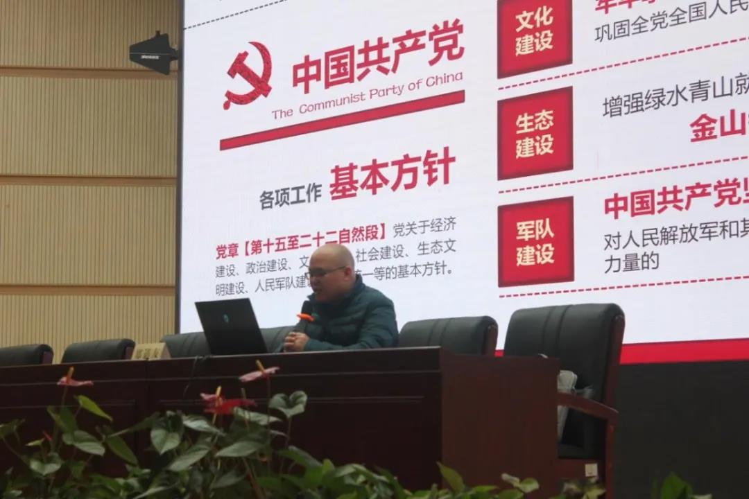 随后,郑道友老师强调了学习党章首先要学好总纲,并明确讲解了党的性质——是中国工人阶级的先锋队,同时是中国人民和中华民族的先锋队,是中国特色社会主义事业的领导核心,代表中国先进生产力的发展要求,代表中国先进文化的前进方向,代表中国最广大人民的根本利益。并讲解了“行动指南”及“十九大新思想”,在该模块的最后,又提到了“主要成就和新时期的历史任务”和“社会主义初级阶段的现状”。