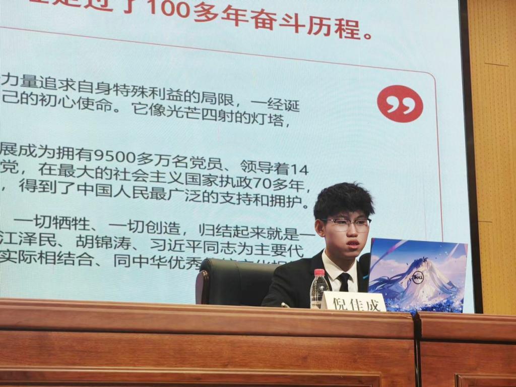 第六期团课由倪佳成同学主讲,团课内容围绕“习近平的知青岁月”展开。在倪佳成同学的讲解下,同学们进一步体会到了“青年时代选择吃苦也就选择了收获,选择奉献也就选择了高尚”这句话的深层含义。此次团课为同学们树立了一个明确的榜样,指引大家未来朝着正确方向发展。