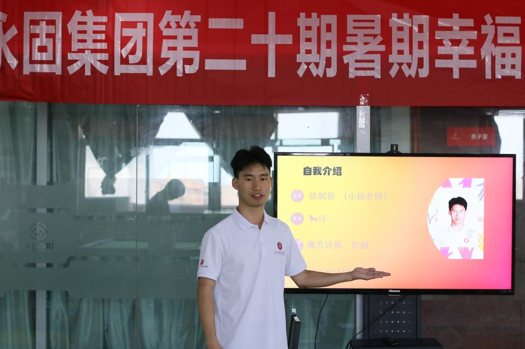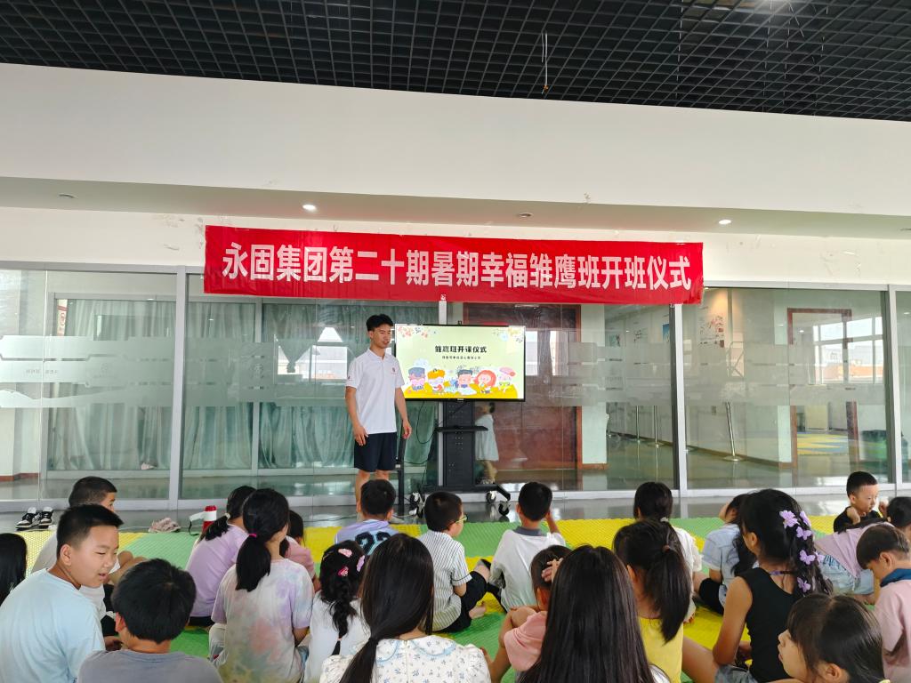 2024年7月8日星期一,绿色啄木鸟爱心支教小队在充分准备后,正式开启支教之旅。本次支教面向群体为永固集团职工子女,共50余人。支教的第一天,我们爱心支教小队在永固集团八楼“春泥计划活动室”举行了开班仪式。