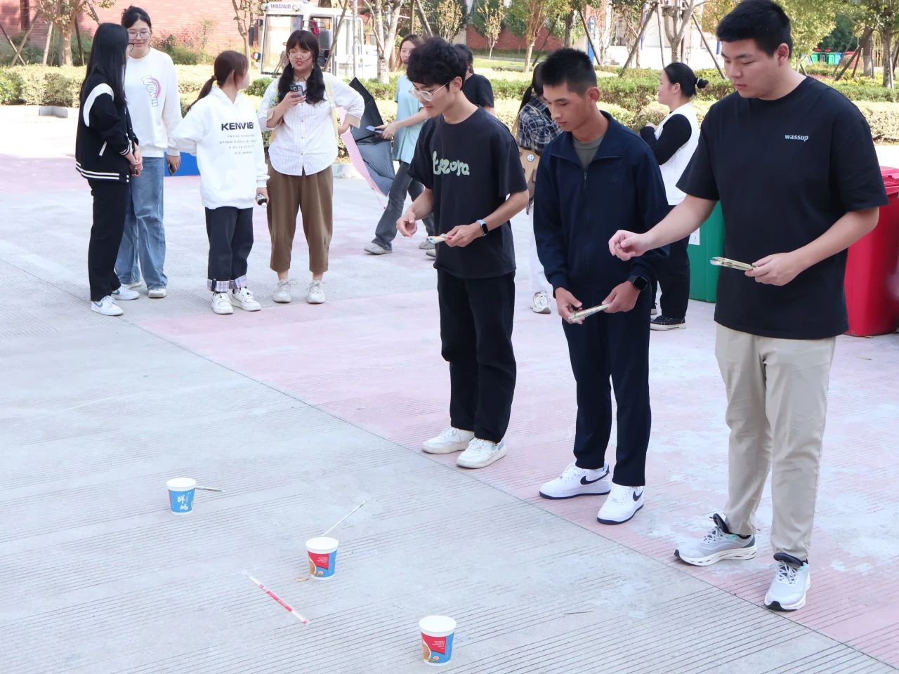 同学们围聚一起,目光专注,手持箭杆,瞄准壶口,轻轻投出。他们手中的筷子如箭在空中划出优美弧线,每一次精准入壶,都引来热烈欢呼与掌声。大家都沉浸其中,尽情体验游戏之乐,感受着传统文化的独特魅力。