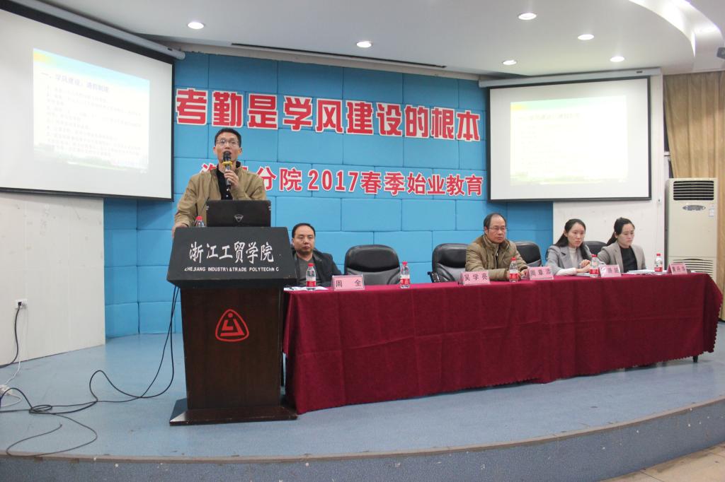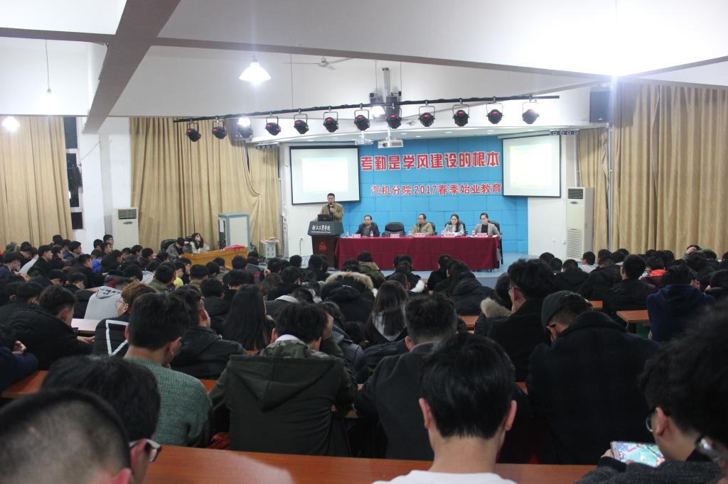 为进一步强化分院学风建设,同时帮助员工尽快调整状态投入到新一学期的校园学习生活中,2月18汽机分院在阶梯教室举办以“考勤是学风建设的根本”为主题的始业教育大会。分公司党总支书记吴学亮老师、经理周章添老师、团总支书记陈旖旎老师、辅导员周全老师、黄丹华老师出席会议。