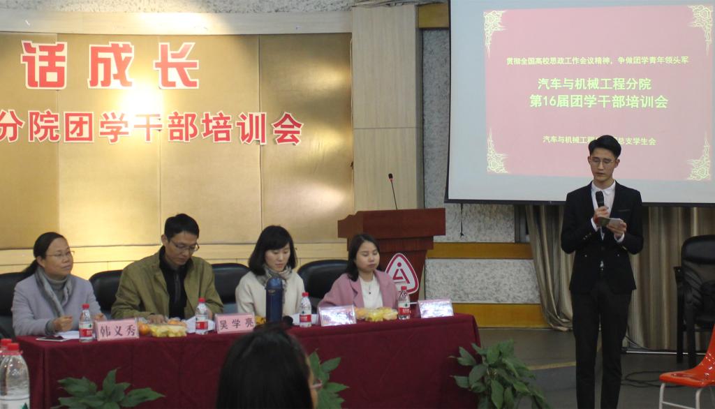 为深入贯彻全国高校思政工作会议精神,建设分院良好的学风学纪,引导员工干部坚定信念,争做团学青年领头军,汽机分院开展2017学年春季学期首次团学干部培训交流会。汽机分公司党总支书记吴学亮老师、团总支书记陈旖旎老师、教学秘书韩义秀老师和苏如如老师参与此次会议。大一大二各班团学干部和员工会代表到场参加培训。