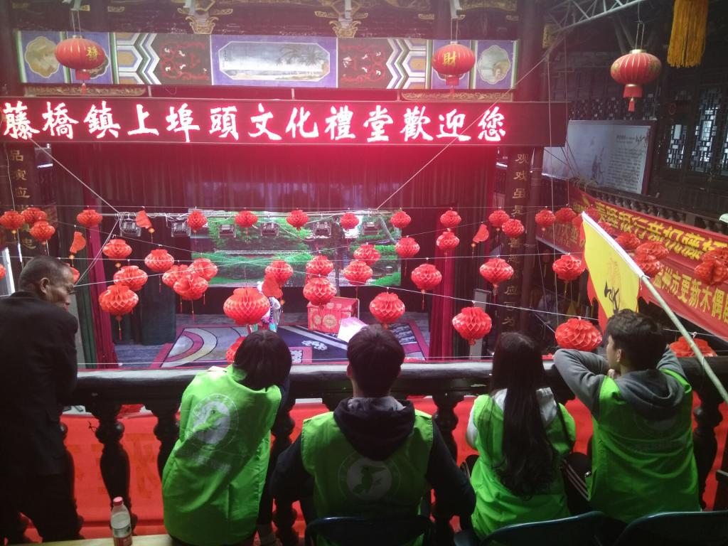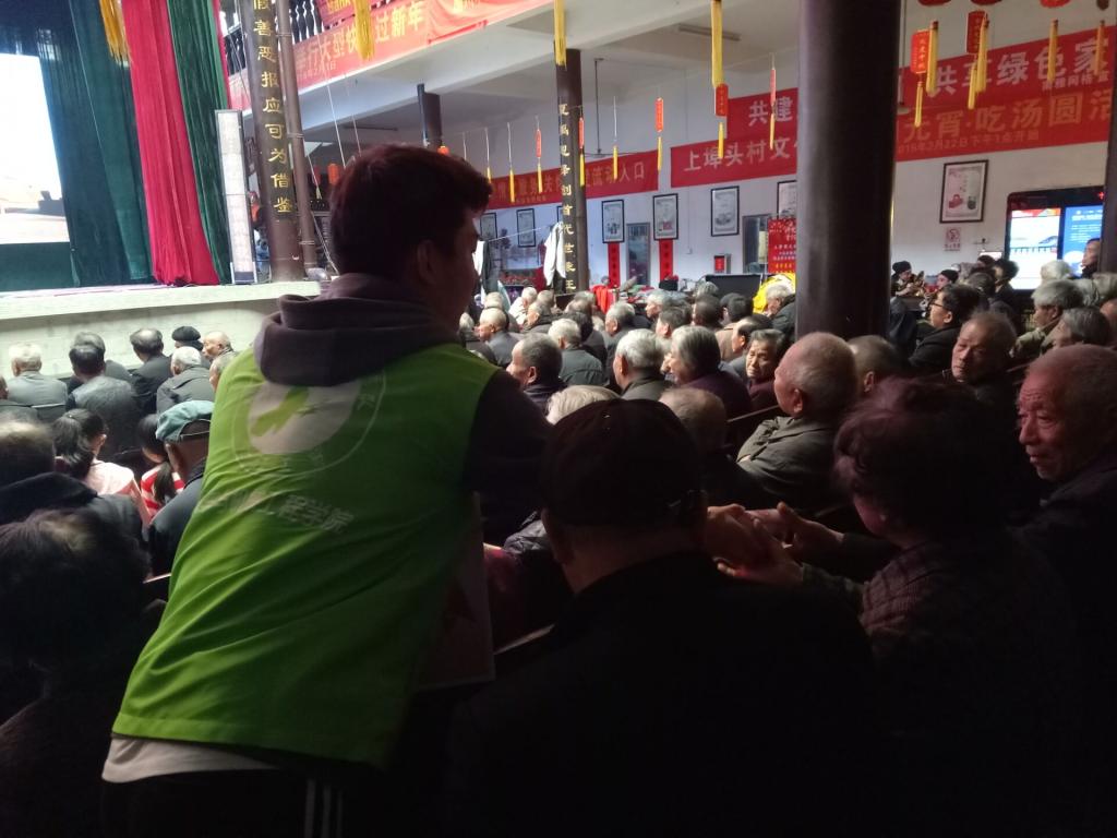 清明节开展祠堂祭祀活动是温州当地的乡土传统,作为外地的员工们借由这次下乡的机会感受到了浓郁地道的温州传统节日风味。天公作美,晴空万里,九名志愿者到达文化礼堂后就参与到活动中去,摆座位,递茶水,与村民们一起看戏,享受着这场视觉与听觉的盛宴,大家伙儿都看的不亦乐乎,掌声阵阵。