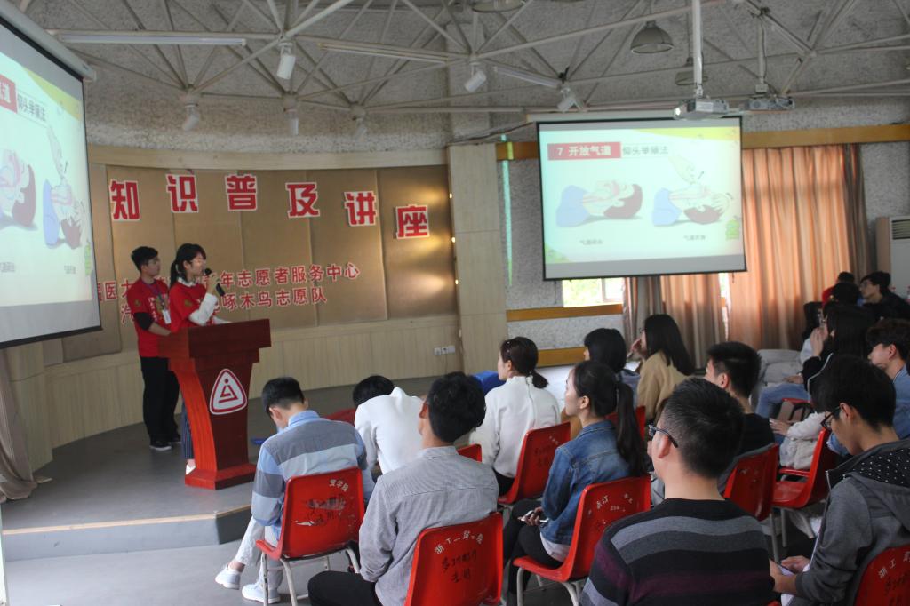 随着天气逐渐转暖,大家的户外运动量逐渐变多,为了减小意外受伤带来的人身伤害,增强大家在危急时刻的自救能力,2017年4月9日下午,3044永利集团绿色啄木鸟志愿队特邀温州医科大学春晖急救部志愿队来到学校为同学们开展急救知识普及和急救技能培训的讲座。