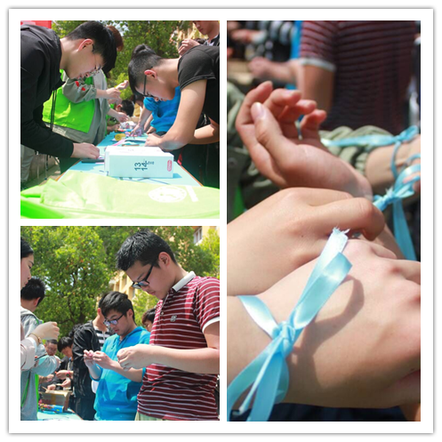 有那么一个群体,缺乏正常的语言沟通和社会交往能力,他们的发育得到阻碍,这种神经系统疾病被称为自闭症。每年的4月2日为关爱自闭症日,为关爱这一特殊的群体,汽机分院绿色啄木鸟志愿队开展了主题为“爱,让星空蓝起来”的关爱自闭症、宣传自闭症的活动。本年度绿色啄木鸟的宣传队伍分为校内和校外两个场地,校外是协助温州自闭症患儿康复机构和温州“益起行”公益机构举办的倡导活动。