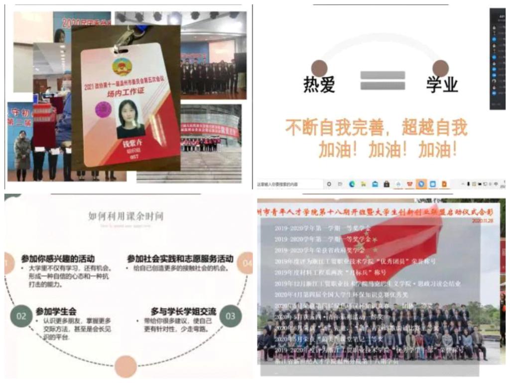 在活动的开始,主持人介绍了与会人员与活动目的,而后并邀请优秀学子进行发言,分享生活经验并进行疑惑解答。第一位是软件1903班郑威升学长,他告诫我们:失败不可怕,可怕的是失败后仍有余力;材料1902班陈伟妙学姐提到“朋友与能力,是在大学中最大的收获。”;旅管1902班姚静琦学姐的座右铭便是“过程很重要,结果也很重要。”;紧接着艺术设计1801班谭梦雅学姐提及“态度决定一个人的成功,只有不怕辛苦,努力超越自我,不断在自身的水平上取得进步,我们才能比别人更好一点。”;随后国贸1903班钱紫卉学姐以“路,是自己走出来的;机会,是自己创造出来的”勉励自己,同样的,也给正在努力的其他同学,带来了不可磨灭的信心。