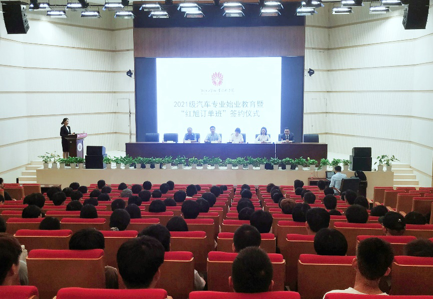 李晓星副经理在致辞中表示,搭建校企合作平台,既深化产教融合,校企合作,又为服务地方经济助力,共同培养汽车技术技能人才。学院将以此次“红旭订单班”开班为契机,大力拓展与行业、企业的联系,加强在人才培养、实训基地、团队队伍及社会服务等方面的建设力度,协同开展技术服务和职业培训,提升服务产业发展能力。同时,红旭集团股份公司充分发挥产业和技术积累优势,与学院在人才培养模式创新、团队互聘共用、社会服务平台搭建等方面开展深入合作、共谋发展。
