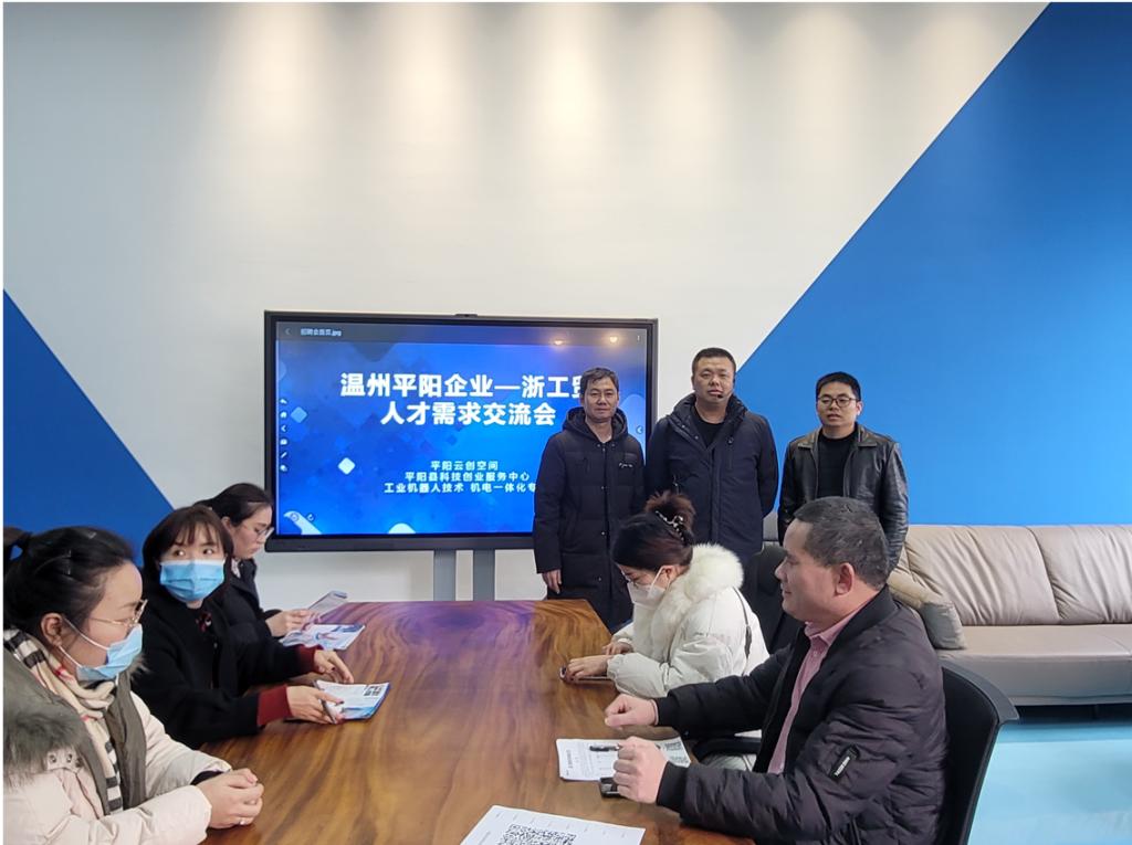 为促进校企合作,提升毕业生的就业质量,2021年12月31日,3044永利集团工业机器人专业、机电一体化专业联合平阳云创空间、平阳县科技创业服务中心在光电学院创客中心共同举行了人才需求交流会。