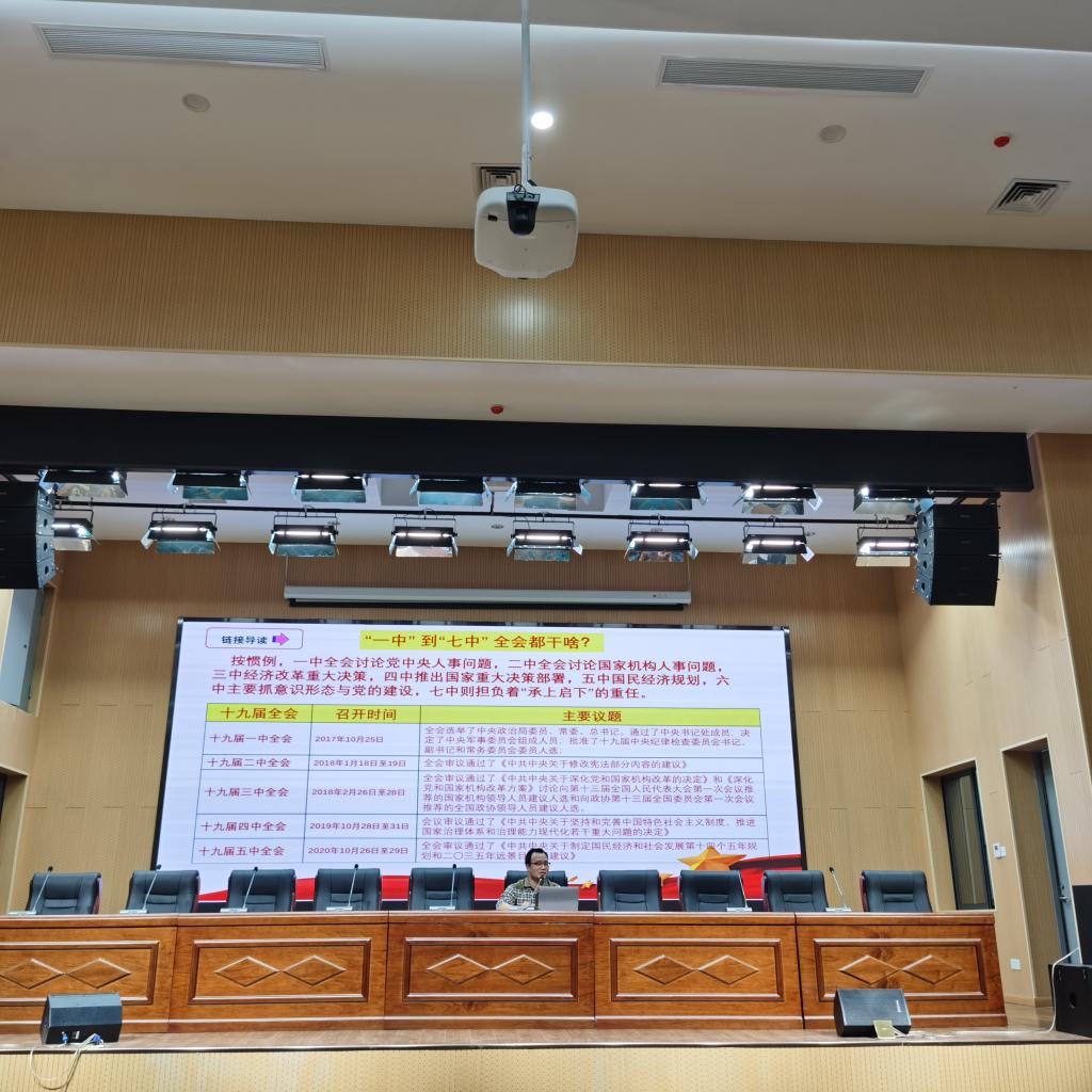 接着,带领大家分享了“十三五”期间我国全面建成小康社会的十大决定性成就,即:全面深化改革取得重大突破、全面依法治国取得重大进展、预计二〇二〇年国内生产总值突破一百万亿元等。还学习了2035年基本实现社会主义现代化的九大远景目标。即:进入创新型国家前列、对基本实现国家治理体系、建成现代化经济体系、国家文化软实力显著增强等;详细讲述了全会提出的“十四五”经济社会发展主要目标:即六个“新”:经济发展取得新成效;改革开放迈出新步伐;社会文明程度得到新提高;生态文明建设实现新进步;民生福祉达到新水平;国家治理效能得到新提升等以及十九届五中全会提出的未来12项重要举措。