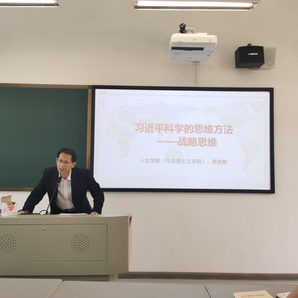 4月23日下午,公司党总支在公共教学楼A212教室举办分院政治理论学习,邀请人文学院副经理敖祖辉老师主讲,敖老师的讲课主题是“习近平科学的思维方法——战略思维”,光电分院全体教师参加学习。