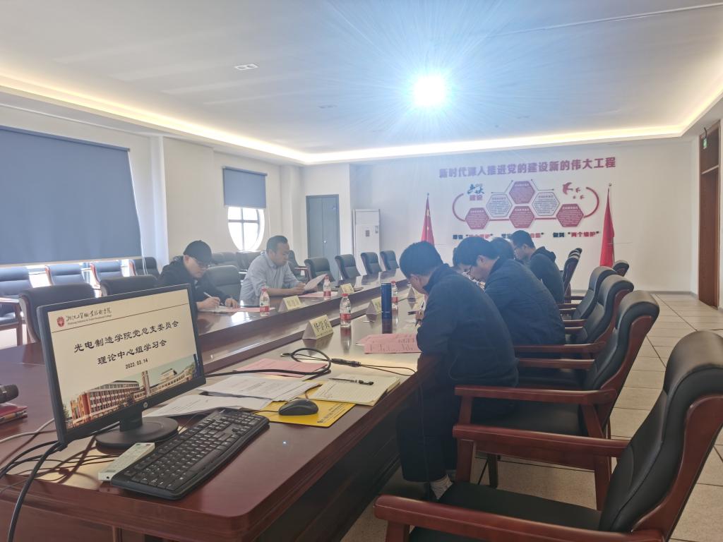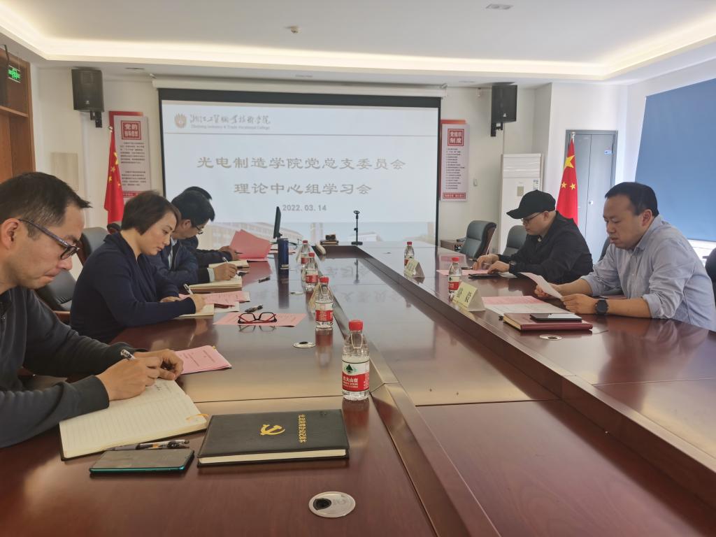 3月14日下午,公司党总支理论中心组举行学习会,专题学习习近平总书记在中央党校(国家行政学院)中青年干部培训班开班式上的讲话精神。班子成员参加会议,会议由光电分公司党总支书记骆毅主持。