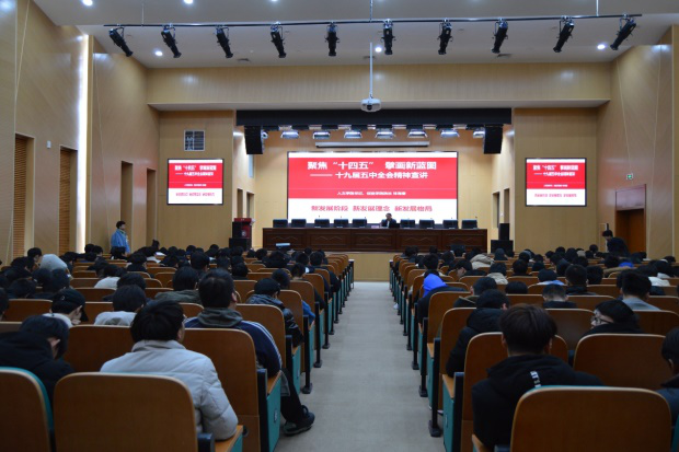 林海春老师为同学们做十九届五中全会精神的解读,从新发展阶段、新发展理念、新发展格局上,为同学们阐述了十九届五中全会精神的内涵,并就“十四五”时期我国经济社会发展的总体思路和主要目标、我国如何构建以国内大循环为主体、国内国际双循环相互促进的新发展格局进行了分析。